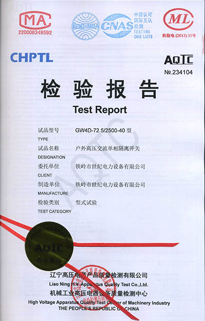 戶外高壓交流隔離開關檢驗報告