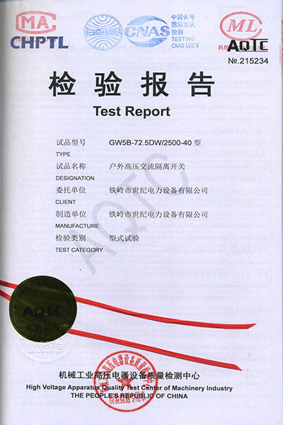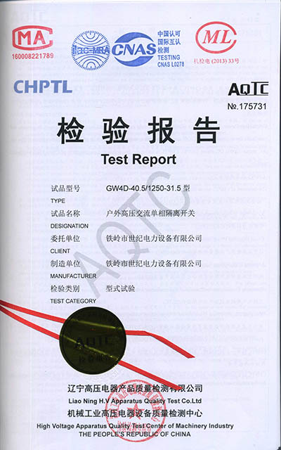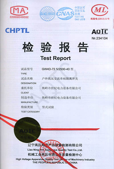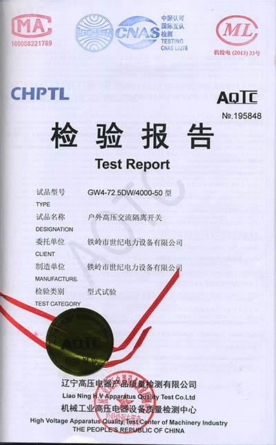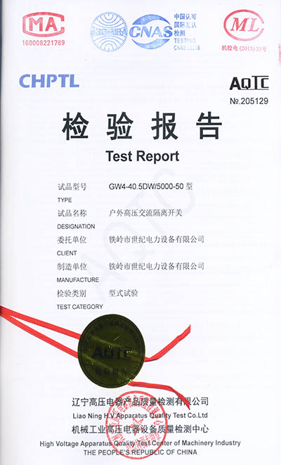 戶外高壓交流隔離開關(guān)檢驗(yàn)報(bào)告