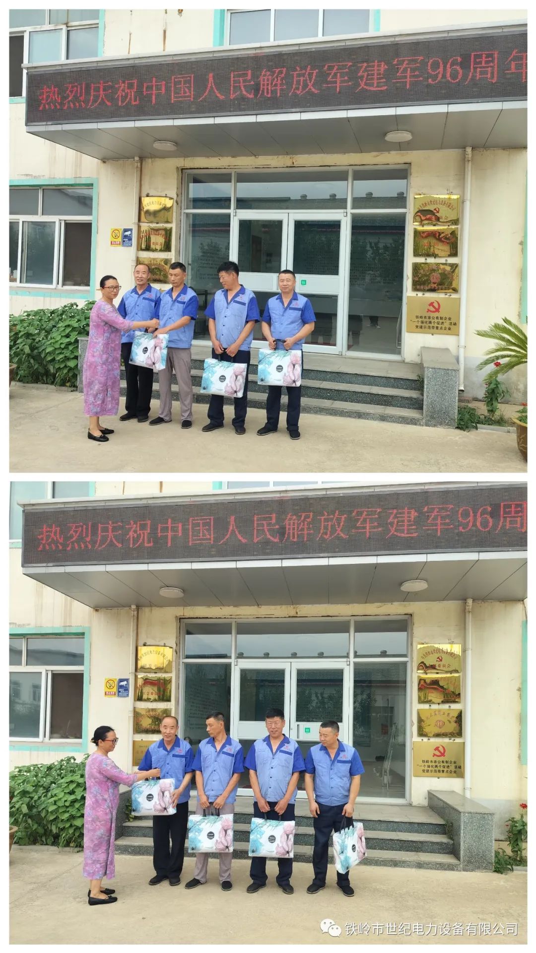 在“八一”建軍節(jié)來臨之際,為發(fā)揚優(yōu)良傳統(tǒng),傳承紅色基因。8月1日鐵嶺市世紀電力設備有限公司開展了“八一暖心慰問,情系退伍軍人”慰問活動,把黨和公司的關懷送到了退伍軍人職工的心中。